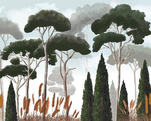Carta da parati personalizzata in cipresso, pino ed erba della pampa