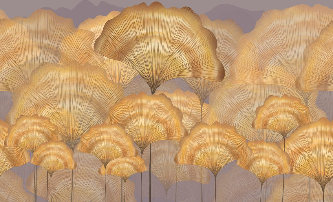 Carta da parati per bagno contemporanea in ginkgo ocra