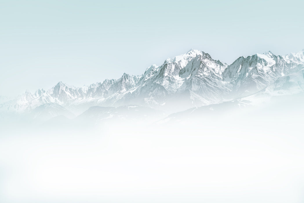 Carta da parati per bagno Mont Blanc in blu nebbia