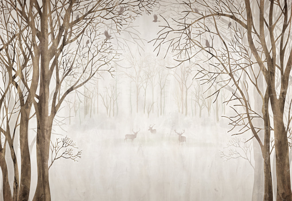 Viaggiate nel paesaggio incantato dei boschi con questa carta da parati per bagno su misura. Questo murale minimalista raffigura una foresta dai toni scandinavi. Leggermente cancellati, i cervi appaiono e danno alla vostra mente la possibilità di vagare. Trasformate l'atmosfera del vostro bagno con una carta da parati per bagno.