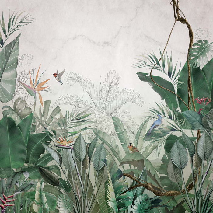 Immergetevi nella natura con la nostra carta da parati panoramica Jungle Quintessence Green. Con il suo fogliame lussureggiante e la tavolozza verde brillante, questa carta da parati conferisce un'atmosfera esotica e rilassante a qualsiasi stanza.