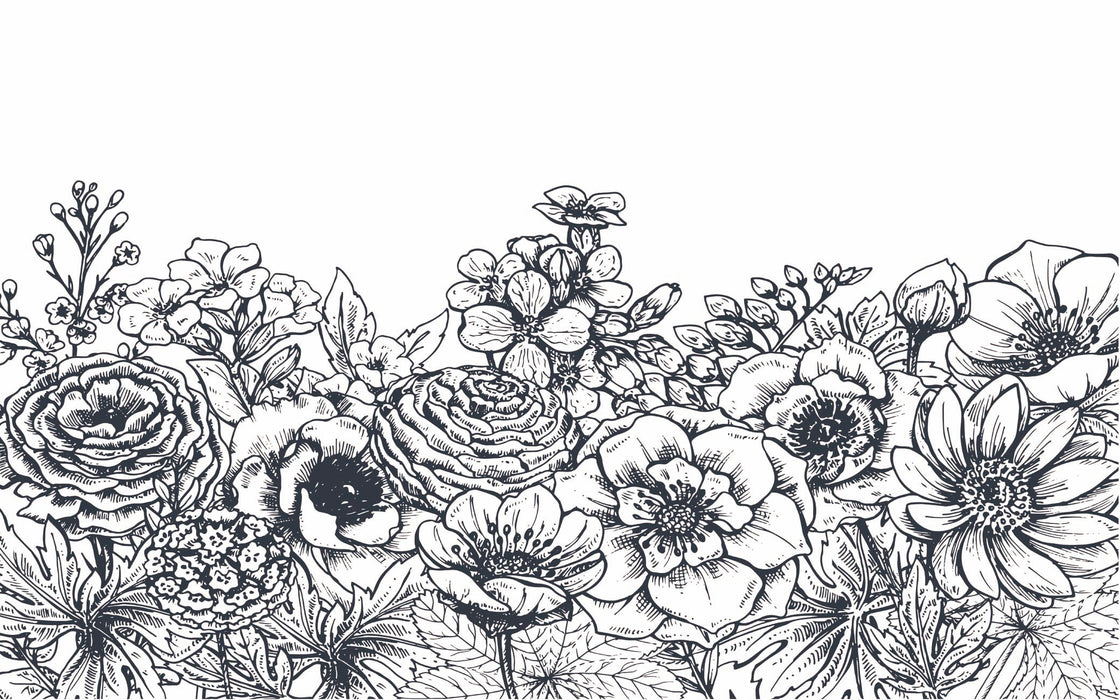 Carta da parati con bouquet floreale in bianco e nero