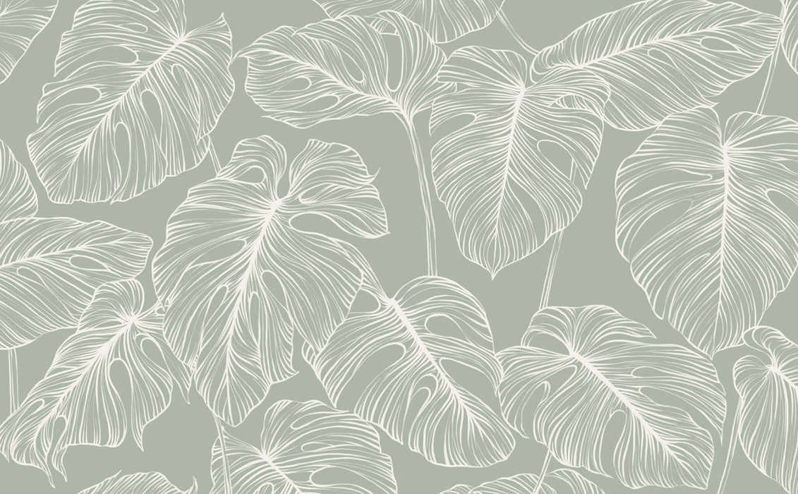 Carta da parati Monstera verde tenue – Un murale vegetale di tendenza