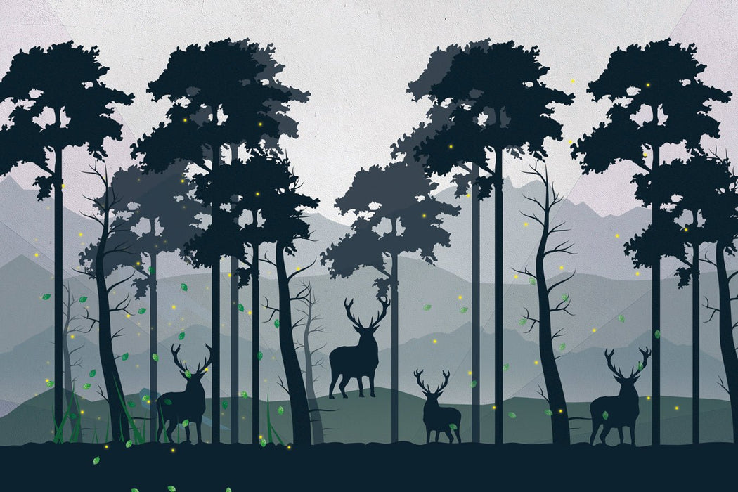Una carta da parati panoramica sulla natura, ispirata ed esotica, con una foresta di cervi di colore verde intenso. Questo murale in tessuto non tessuto dai colori verde intenso porterà la natura nella vostra casa. Questo rivestimento murale XXL rappresenta un dipinto della foresta, ideale per un soggiorno, una camera da letto o un ufficio. Portate l'aria aperta all'interno, create facilmente un interno unico con la nostra carta da parati in tessuto non tessuto su misura. Il cervo può essere rimosso dalla decorazione murale su richiesta via e-mail.