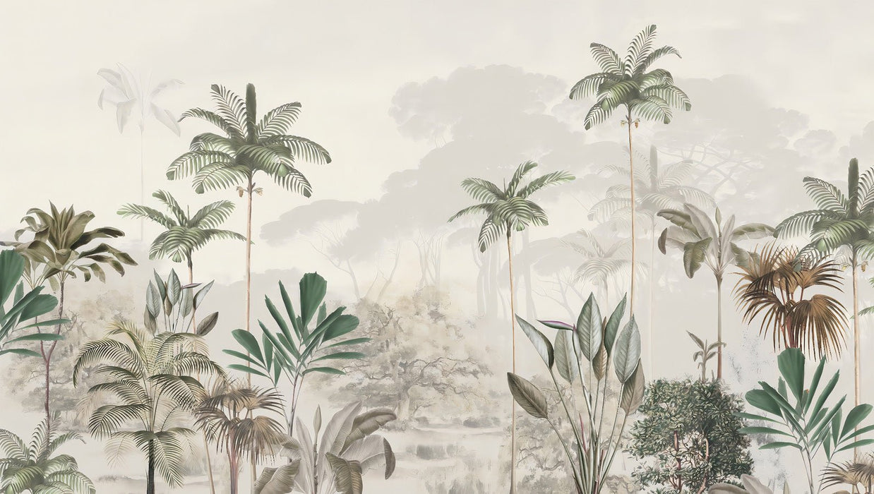 Questa carta da parati con paesaggio verde della giungla ingrandirà visivamente la vostra stanza e le conferirà profondità.