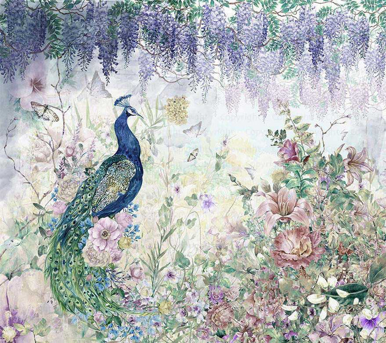 Carta da parati panoramica Peacock Blue Peacock Floral