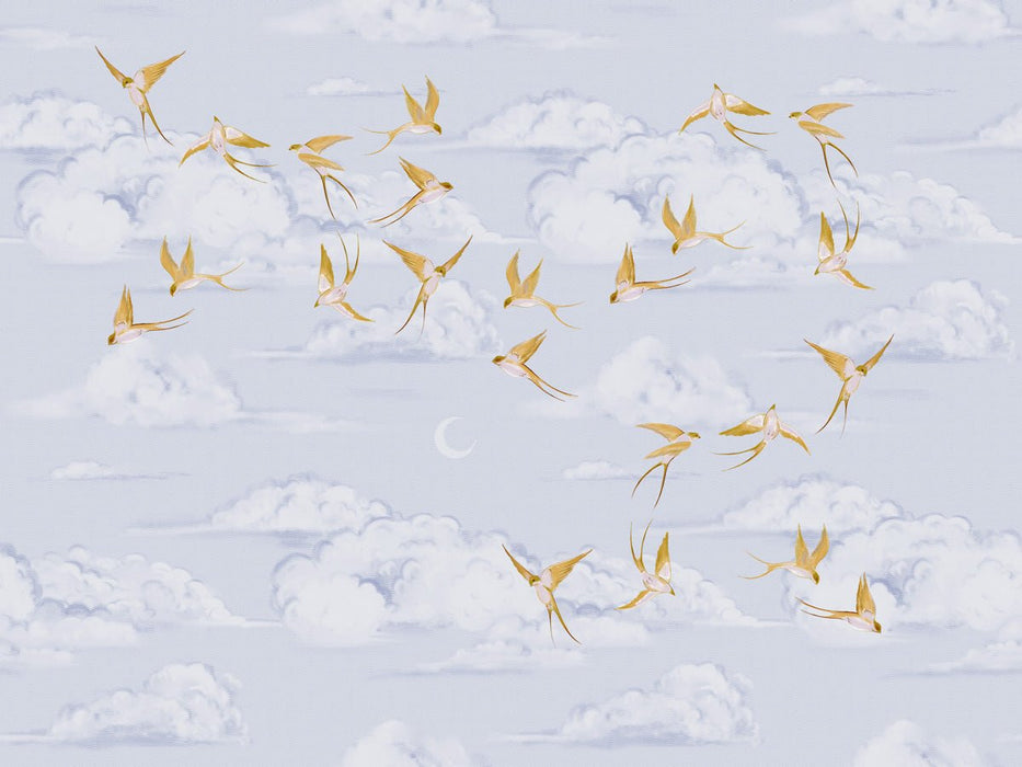 Poesia e magia sono all'ordine del giorno con questa poetica carta da parati con nuvole di uccelli dorate ! Se volete creare uno stile elegante e discreto, questa romantica creazione murale è perfetta. In un soggiorno, in una camera da letto (come testata), in un ingresso, in una sala da tè o in una camera d'albergo, questa carta da parati panoramica conferirà luminosità e un tocco sofisticato ai vostri interni. Create un interno da sogno con la nostra carta da parati panoramica su misura.