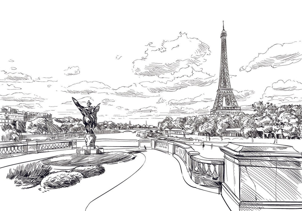 Immergetevi nell'eleganza senza tempo di Parigi con la nostra raffinata carta da parati, che cattura la magia della Città delle Luci. Ispirata alle stampe artistiche in bianco e nero, ogni dettaglio è meticolosamente disegnato a mano, offrendo un'estetica autentica e raffinata. Questa carta da parati evoca l'essenza stessa di Parigi, con il maestoso ponte Bir Hakeim e l'iconica sagoma della Torre Eiffel che si staglia orgogliosa in un incantevole paesaggio urbano.