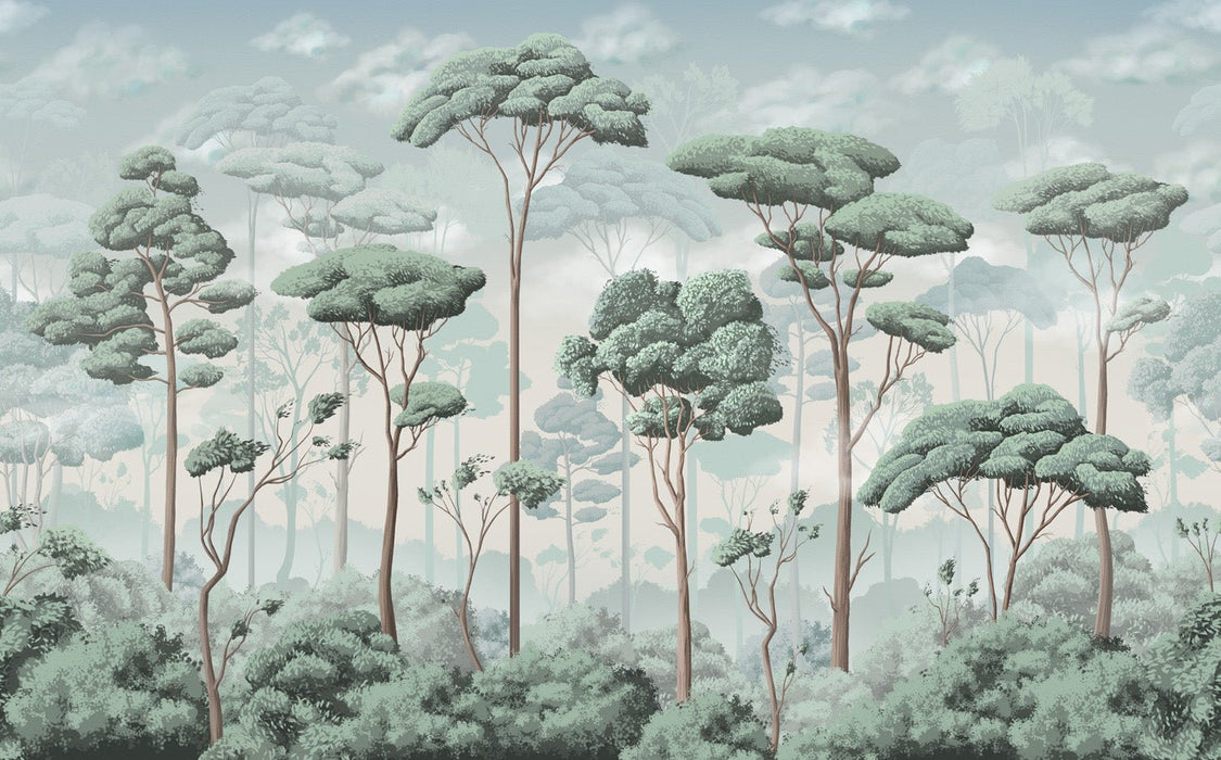 Immergetevi nel mondo delicato e raffinato di una pineta con la nostra voluttuosa carta da parati panoramica in pineta. Questo arazzo da parete su misura valorizzerà i vostri interni. Un tocco elegante e artistico per questa carta da parati realizzata come un quadro. Questa decorazione murale è composta da un bouquet di grandi alberi disegnati in una gamma di blu e verdi. Questa carta da parati panoramica sarà perfetta in qualsiasi stanza della casa. È ideale per aree professionali come hall di hotel, camere degli ospiti e sale da pranzo di ristoranti. Acquistate subito la vostra carta da parati panoramica su misura, francese ed eco-responsabile.