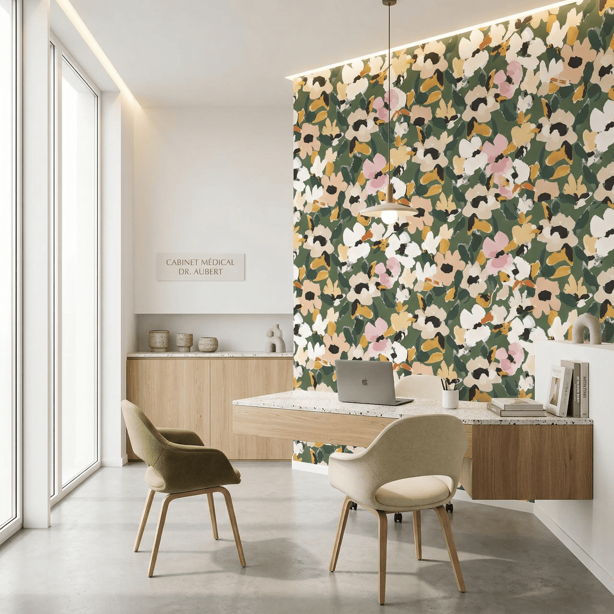 Parfait pour une décoration tendance, ce papier peint floral pour intérieur s’intègre aussi bien dans un univers contemporain que dans une ambiance naturelle ou bohème chic. Il se marie parfaitement avec des matériaux comme le bois clair, le lin ou des accessoires dorés.