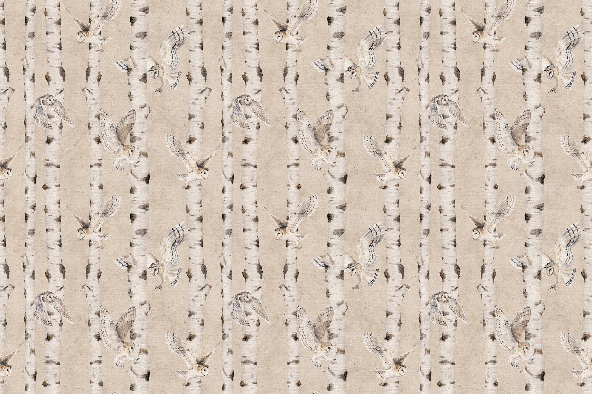 Apportez douceur et poésie à votre intérieur avec cette tapisserie sur mesure, au motif délicat de chouettes et de bouleaux.