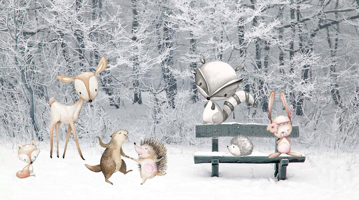 Porta morbidezza e tenerezza nella stanza di tuo figlio grazie a questo Animali da parati dell'arredamento invernale, con colori morbidi e motivi animali.  I motivi teneri seduceranno il bambino in un batter d'occhio. Adatto alle camere del piccolo effetto bozzolo garantito. Crea facilmente il mondo immaginario che ha sempre sognato il nostro sfondo con le tue misurazioni.
