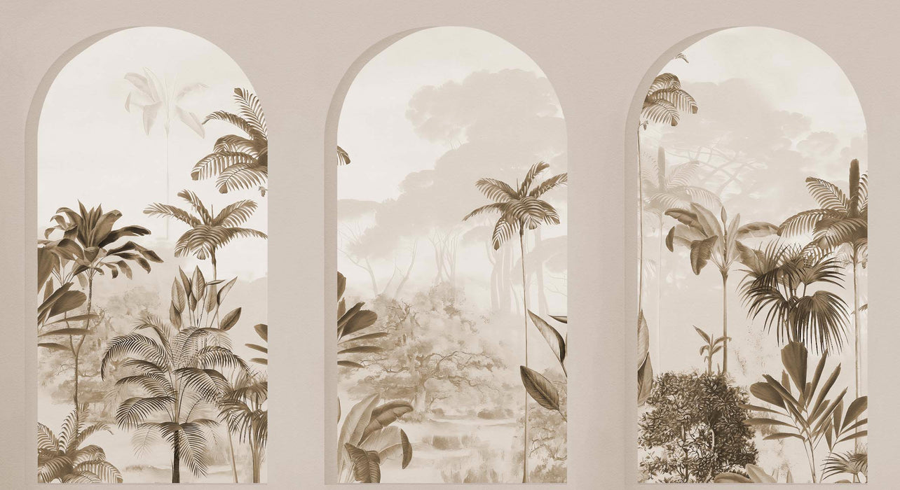 Immergetevi nel cuore del lusso tropicale con la nostra carta da parati Archi lussureggianti. Questo design accattivante presenta archi avvolti da una vegetazione lussureggiante, evocando un viaggio incantevole attraverso una giungla esotica. Ogni dettaglio di questa carta da parati color seppia è stato accuratamente progettato per creare un'atmosfera coinvolgente e rivitalizzante nel vostro spazio interno.
