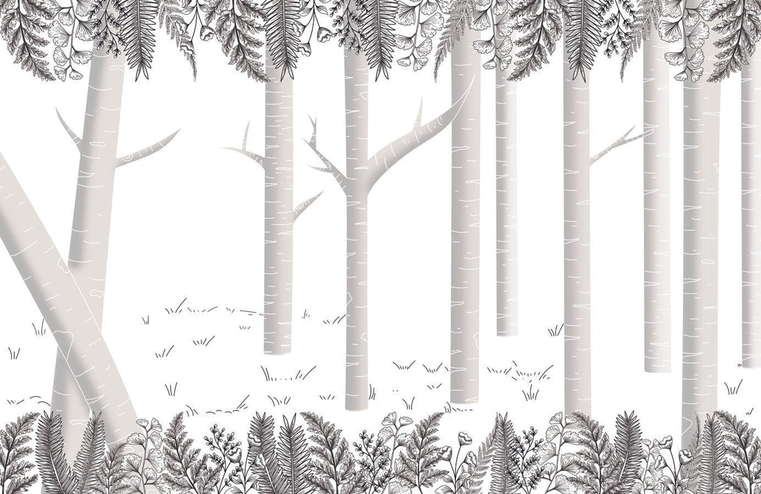 Carta da parati foresta di betulle grigia
