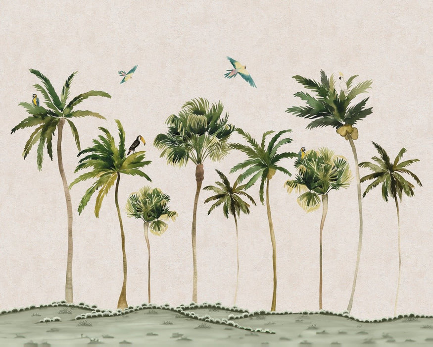 Regalate alla vostra casa una vera e propria evasione tropicale con Rêve de Palmier, una carta da parati con sublimi illustrazioni ad acquerello. Ispirata ai paesaggi lussureggianti dei tropici, questa carta da parati tropicale trasforma istantaneamente la vostra stanza in un'oasi di pace dove regna una morbida atmosfera vacanziera.