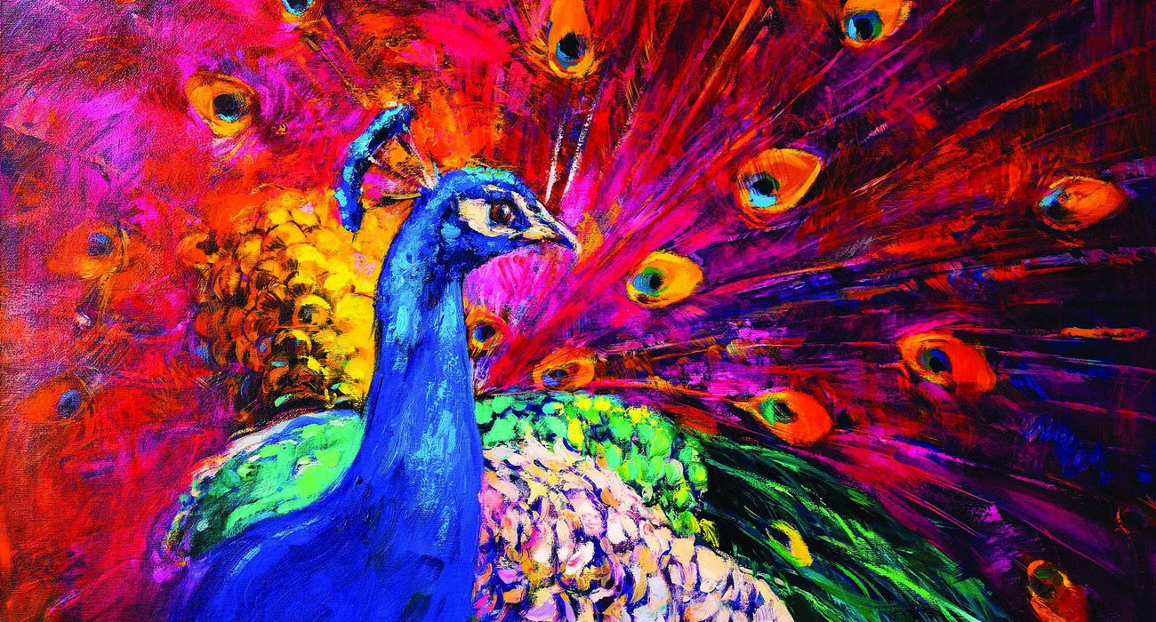 Ammirate la maestosa ruota del pavone rosa attraverso la nostra carta da parati panoramica con pavone rosa. L'originalità di questa decorazione, con i suoi colori vivaci e rari di questo uccello rosa in pieno corteggiamento, impressionerà gli appassionati di pittura e i vostri ospiti.