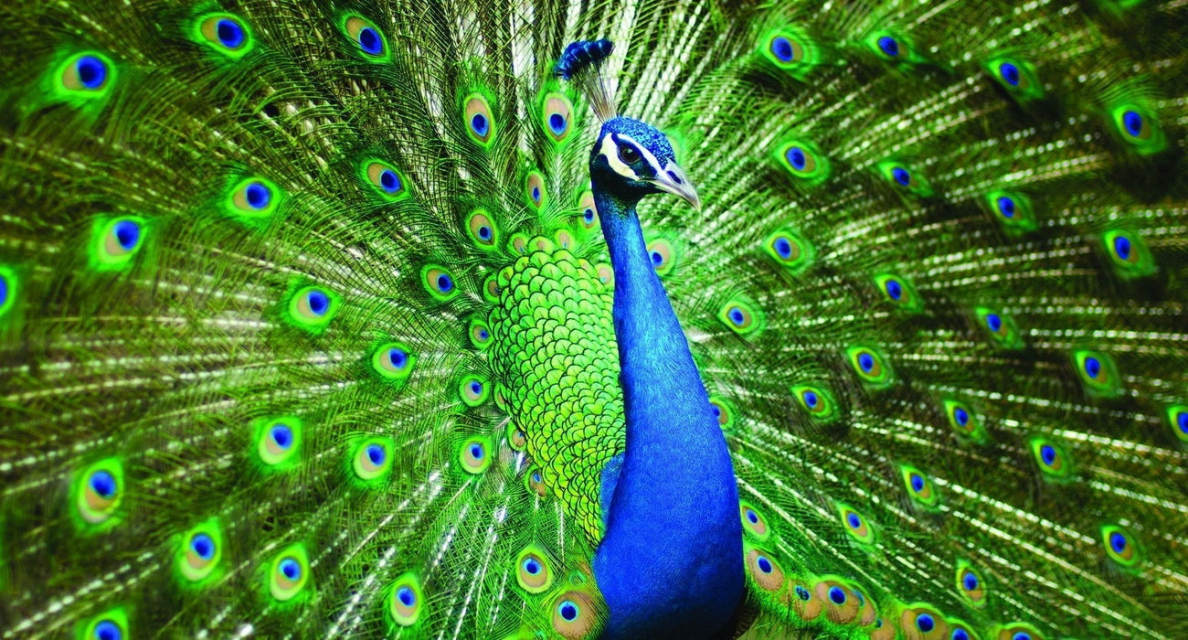 Ammirate la maestosa ruota del pavone attraverso la nostra carta da parati panoramica Peacock wheel. Queste lunghe piume a ventaglio sono messe in risalto con dettagli precisi e colori vivaci.
