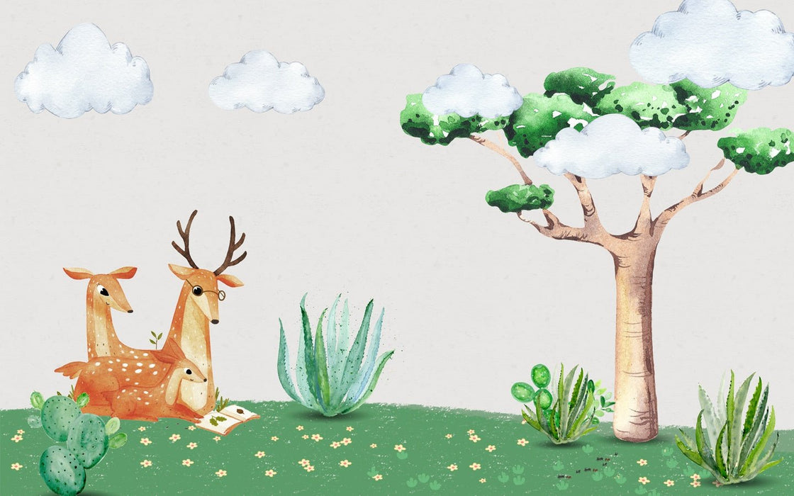 Scoprite la nostra carta da parati con cervi e piante. Questa carta da parati per bambini con animali è rilassante e ideale per la cameretta dei bambini, la stanza dei neonati o la stanza dei giochi. Una carta da parati per bambini su misura che donerà morbidezza e tenerezza alla vostra stanza. Un murale per bambini rilassante e caldo che trasformerà la vostra casa. Questa carta da parati vegetale è stata progettata appositamente per lo spazio di vita del vostro bambino. Questa carta da parati panoramica è sana ed ecologica.