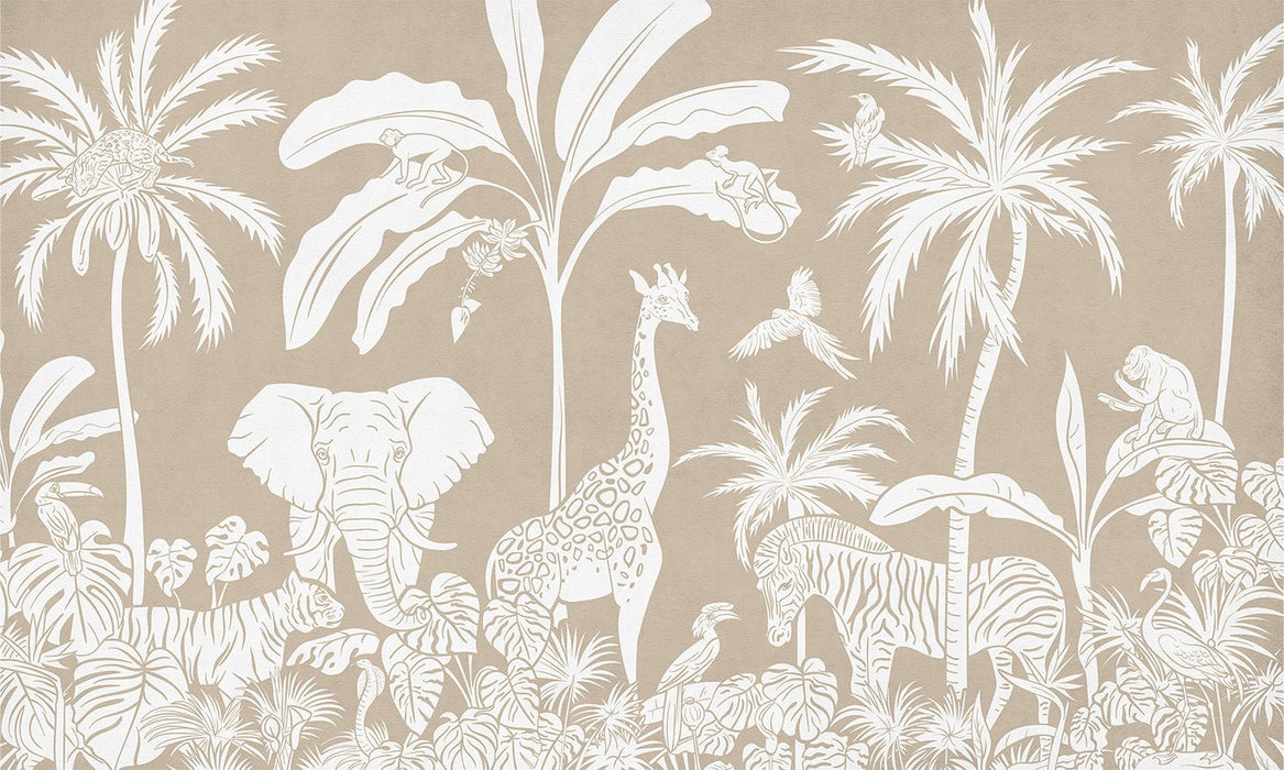 Carta da parati per bambini Safari monocromatica beige
