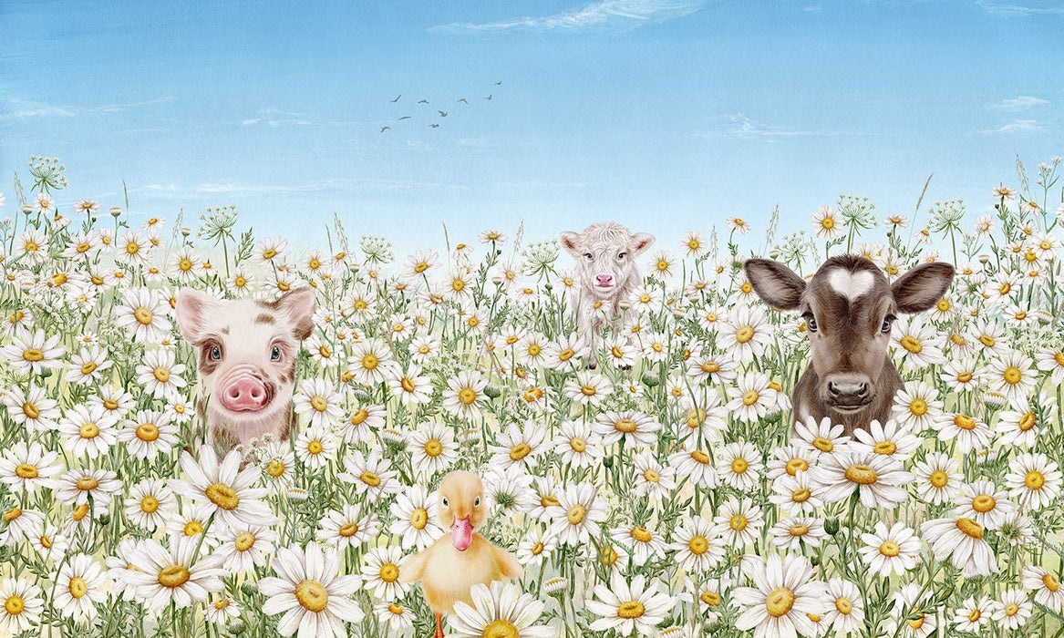 Condividete le nuove avventure con il nostro nuovo sfondo per bambini "Sweet Meadow". Una carta da parati naturale per bambini che ci ricorda le gioie e le bellezze semplici della natura: un campo in fiore con margherite, cieli blu e animali felici. Con questa carta da parati per bambini, la vostra decorazione murale sarà il più possibile vicina alla natura. La cameretta di un bambino o di un neonato sarà sublimata da un originale affresco per bambini che crescerà con il vostro bambino.
