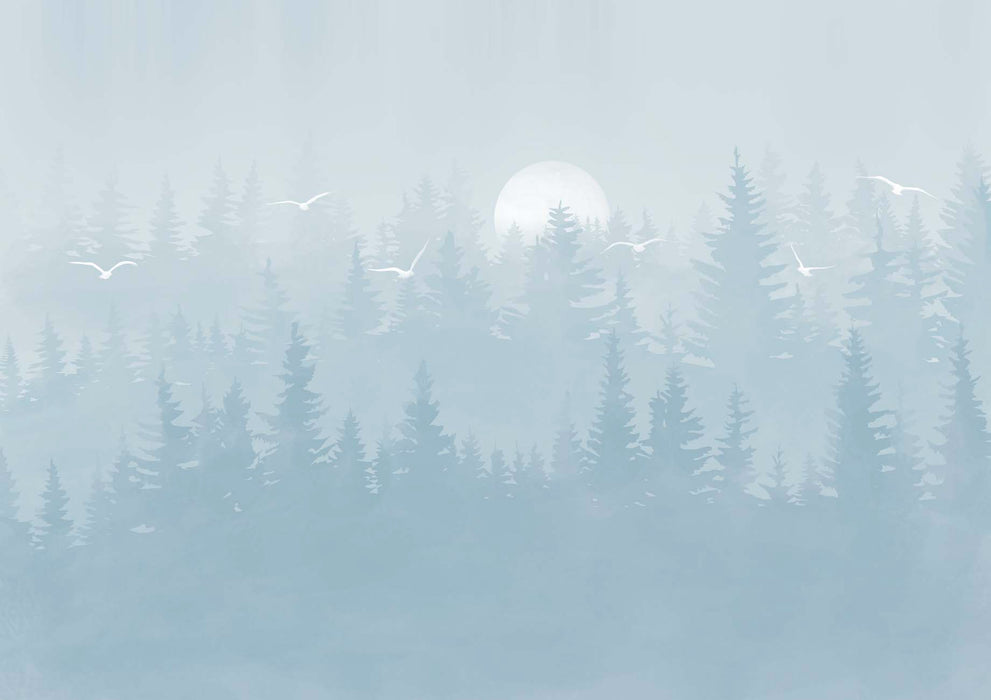 Carta da parati per la cameretta dei bambini Foresta scandinava blu chiaro di luna