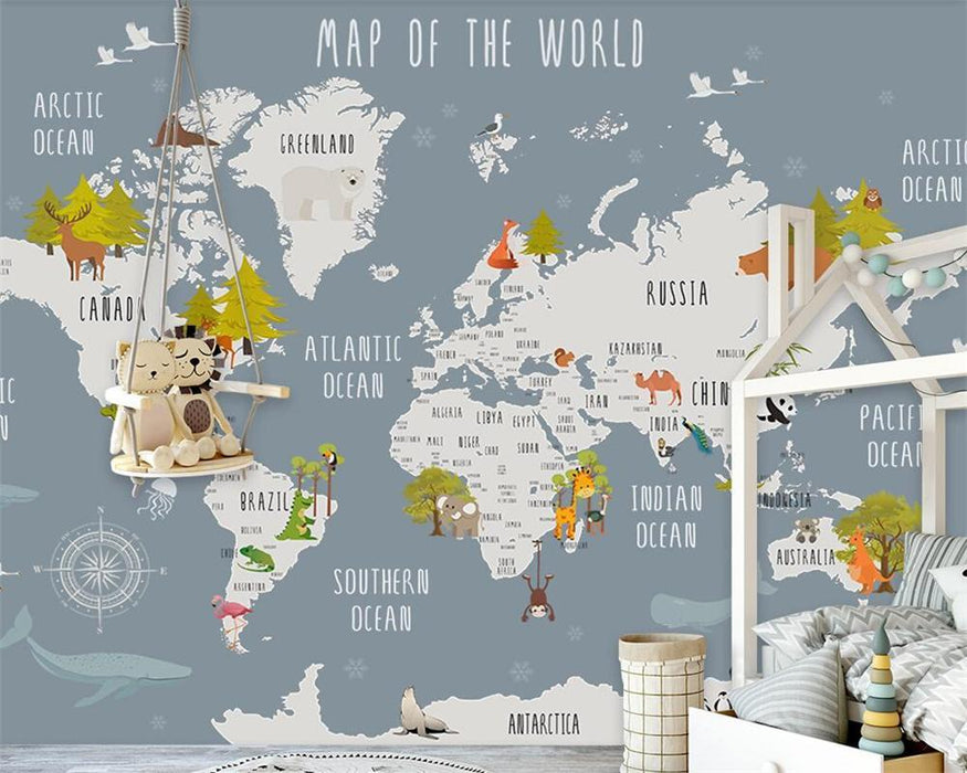 Caratteristiche della carta da parati con mappa del mondo e animali per bambini: