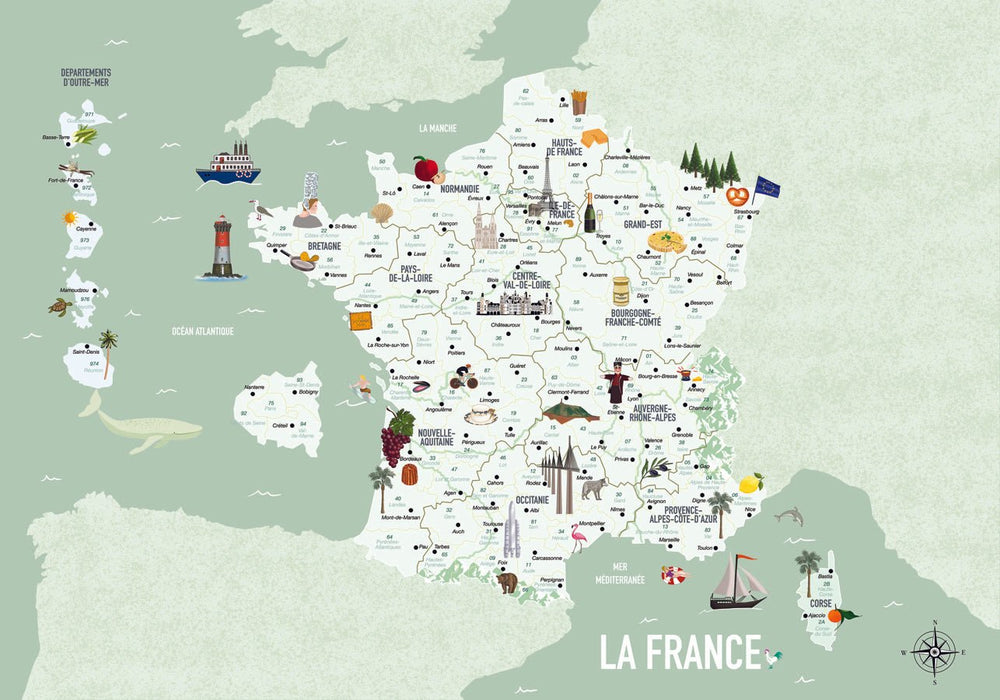 Scoprite la nostra carta da parati verde della Francia per bambini. Questa mappa della Francia è un modo semplice per far conoscere la geografia della Francia a grandi e piccini. Questo sfondo illustrato del mappamondo permette di scoprire le specialità delle regioni o dei dipartimenti. Una carta da parati divertente, facile da imparare e splendidamente illustrata che mette in risalto tutte le ricchezze della Francia: monumenti, cibo, montagne, fiumi, dipartimenti e mare... Come non innamorarsi di questo murale con carta di Francia? Questa decorazione panoramica ha uno stile morbido e scandinavo ed è disponibile in tre colori. È ideale per creare un'atmosfera rilassante per addormentarsi, ma è anche pensato per facilitare l'apprendimento e ispirare tutta la famiglia a scoprire i quattro angoli della Francia. È facile creare un arredamento unico con questa carta da parati su misura! Siamo sicuri che vi piacerà. Tutte le nostre carte da parati sono Eco-friendly, Kids Friendly. Sono rispettose dell'ambiente e degli interni. Appendete questa carta da parati panoramica Carte de France nella cameretta, nella stanza dei giochi o nell'aula del vostro bambino! I bambini rimarranno a bocca aperta.