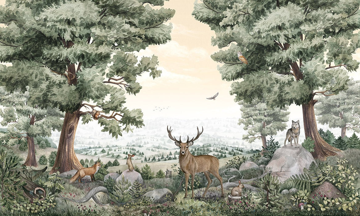 Lo spettacolo degli animali della natura è iniziato! Con la nostra carta da parati sulla vita animale, decorate la cameretta del vostro bambino o della vostra bambina per insegnargli a conoscere le specie animali e l'importanza che hanno oggi sul nostro pianeta. Tra il cervo, re della foresta, la volpe dispettosa, il lupo attento, gli uccelli, le lepri e gli scoiattoli, il vostro bambino avrà di che divertirsi e imparare! I bambini amano gli animali, quindi optare per una decorazione murale ricca di animali non può che far piacere.
