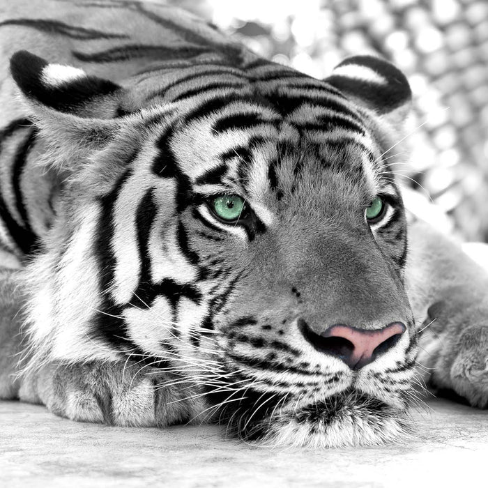Il fascino selvaggio di questo maestoso animale porterà una raffinata decorazione al tuo interno, grazie alla maestosa carta da parati bianca di tigre. Molto luminoso, è l'ideale per il tuo soggiorno, ufficio o camera da letto. Il realismo di questo sfondo ti trasporterà nel mondo della giungla! Non c'è bisogno di sovraccaricare l'elemento di decorazione, è sufficiente un solo pannello a parete di sfondo! E sempre in un batter d'occhio.