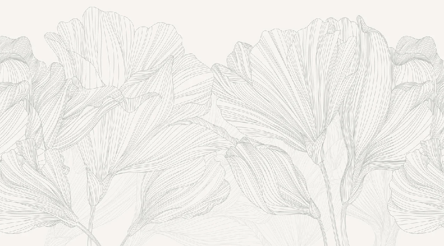 Carta da parati panoramica grigia e bianca con motivo floreale