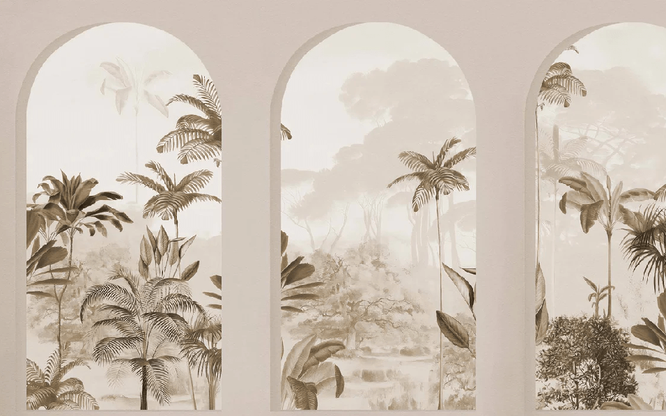 Papier peint arches luxuriantes sépia