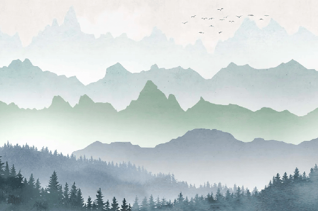Papier peint brume matinale forêt
