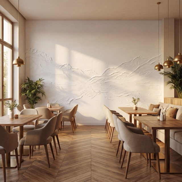 Les textures délicates créent un jeu d’ombres et de lumière qui sublime les murs sans jamais les surcharger, idéal pour un intérieur moderne, un restaurant, un hôtel, un bureau premium ou un salon design.