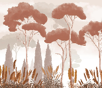 Papier peint cyprès pins et herbes de la pampa terracotta