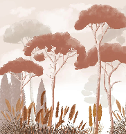 Papier peint cyprès pins et herbes de la pampa terracotta