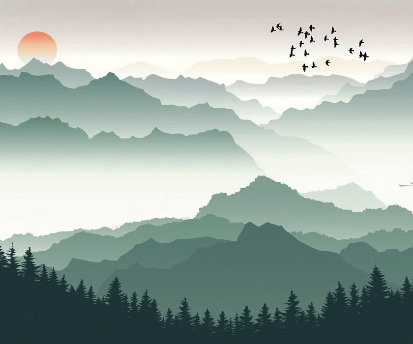 Papier peint montagne et voile sur le lac