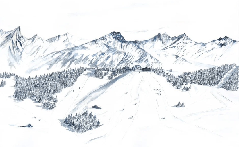 Papier peint montagne Megève – Fresque artistique peinte à la main