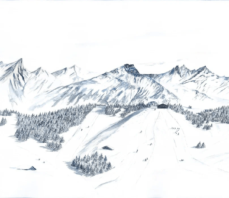 Papier peint montagne Megève – Fresque artistique peinte à la main