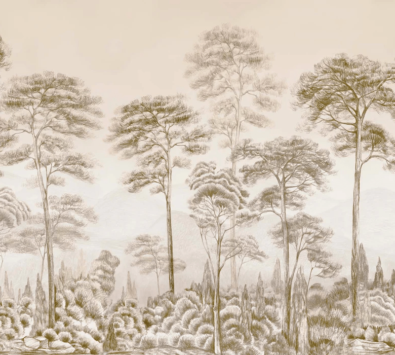 Papier peint nature pinède sépia