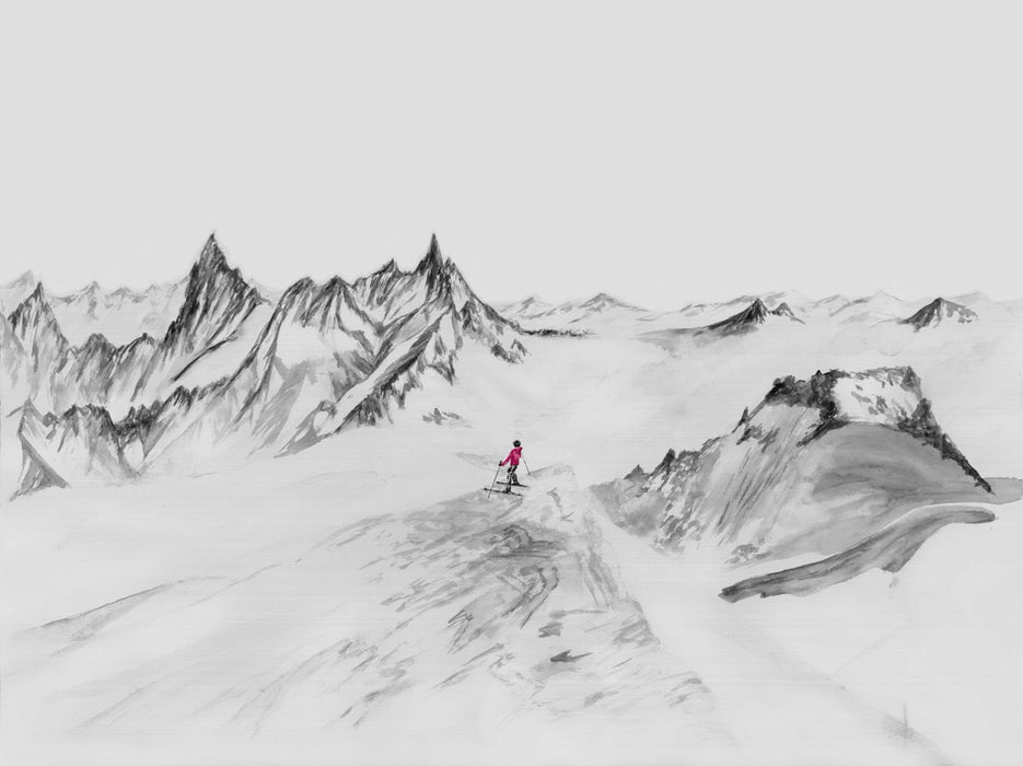 Transformez votre intérieur avec le papier peint panoramique Aiguilles du Midi – Vallée Blanche, une fresque murale en style aquarelle inspirée de l’un des panoramas les plus emblématiques du massif du Mont-Blanc. Cette tapisserie murale reproduit la douceur d’un lavis aquarelle tout en restituant la puissance des sommets mythiques de Chamonix.