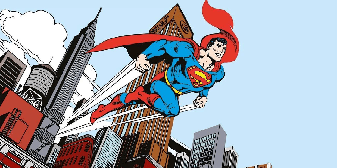 Papier peint panoramique héro superman BD vintage jump hors de la ville