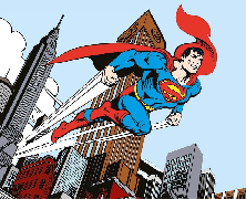 Papier peint panoramique héro superman BD vintage jump hors de la ville