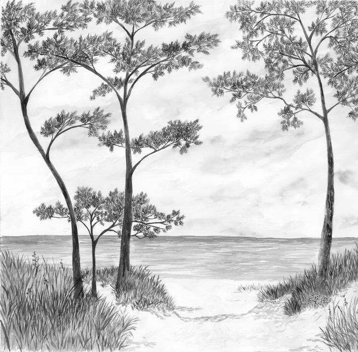 Papier peint Pins maritimes et dunes - Noir et blanc