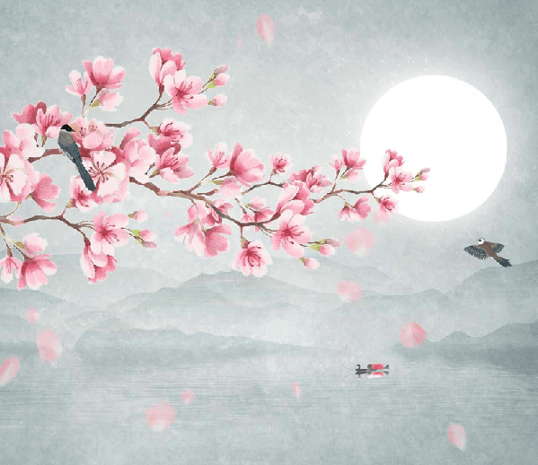 Papier peint salle de bain tendance floral cerisier poétique