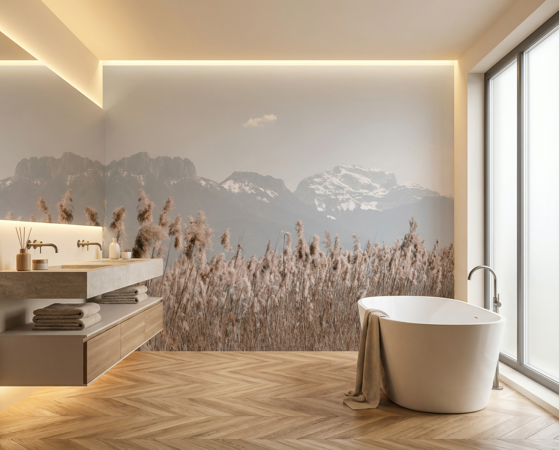 Il suo design in bianco e nero esalta ogni rilievo, giocando con la luce per creare un'atmosfera elegante e senza tempo. Ideale per una decorazione murale senza tempo, questa carta da parati di montagna si integra perfettamente in un salotto, una camera da letto o un ufficio, una hall di un hotel o una sala da pranzo, apportando un tocco di evasione e serenità.